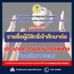 ประกาศรายชื่อผู้ผ่านการคัดเลือกและมีสิทธิเข้าศึกษาต่อ ป […]